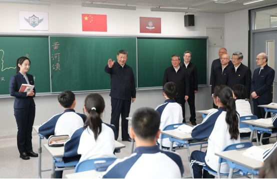 3月23日,中共中央总书记、国家主席、中央军委主席习近平在河北雄安新区考察,并主持召开深入推进雄安新区高质量建设和发展座谈会。这是23日上午,习近平在北京四中雄安校区考察时,走进教室同师生亲切交谈。新华社记者燕雁摄