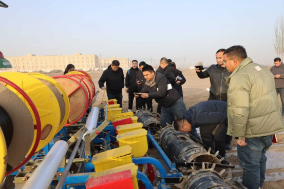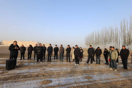 与会人员实地观摩了岳普湖县玉米烘干厂与岳普湖乡英买力村冬播孜然高产创建示范点。通过现场讲解,深入了解了玉米烘干厂在保障粮食品质、提升产业效益中的重要作用。在示范点,与会人员实地察看了冬播孜然的长势,对其在节约成本、提高出苗率和改善品质等方面的优势有了直观的认识。“孜然-玉米”轮作模式有效提高了土地利用率和综合效益,已成为促进农户增收、助力乡村振兴的重要途径。