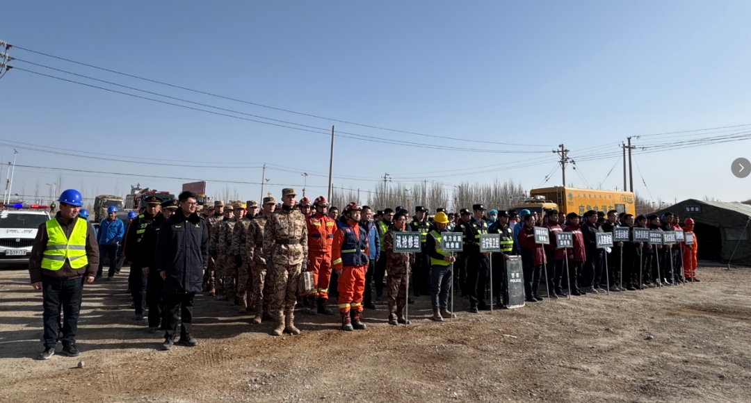 本次演练模拟当日下午15时45分,岳普湖县色也克乡发生7.1级破坏性地震,震区出现“断路、断讯、断电”的极端情况。演练坚持实战导向,贯穿“演、练、评”环节,依次开展“初期响应与属地处置”“指挥部启动与运行”“地震灾害应对处置”和“应急响应结束与后期工作衔接”四个阶段演练。在模拟震中区域,设置了废墟搜索与人员救援、伤员医疗急救与转运、道路桥梁紧急抢通、应急通信快速恢复、电力设施抢险、群众紧急转移安置、救灾物资调运分发、社会治安维护及舆情引导等多科目、全要素实战场景。各参演单位响应迅速、协同配合,有效检验了应急预案的可行性、指挥体系的畅通性以及救援力量的联动能力。