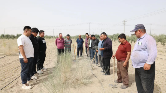 此外,为提升治沙成效,岳普湖县引入了一系列先进的科技手段。在项目区内,无人机播种、智能滴灌系统、土壤墒情监测等现代技术得到广泛应用,使梭梭、沙枣等耐旱植物的成活率显著提高。县林业部门还定期组织专业技术培训,向互助队成员系统传授种植管护、病虫害防治等实用技能,确保苗木"种得活、管得好、见效益"。