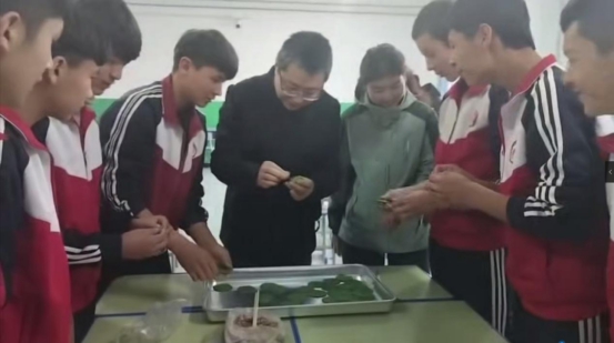 “民族一家亲”从来不是一句口号,而是融入日常的温暖点滴。冬至那天,我和学生、老师们一起在教室包水饺,维吾尔族孩子们第一次接触水饺,笨拙地学着捏褶子,有人包的水饺漏了馅,有人把皮捏成了“小包子”,教室里满是欢声笑语;端午节时,我们又一起包粽子,我教大家如何泡糯米、裹粽叶,老师们则带来自家做的酸奶粽子,甜香的味道里满是情谊。而古尔邦节那天,艾克拜尔老师特意邀请我去他家做客,他的家人准备了丰盛的手抓肉、馓子和水果,热情地拉着我的手聊天,虽然语言不通,但眼神里的善意与温暖,让我感受到了家人般的亲切。